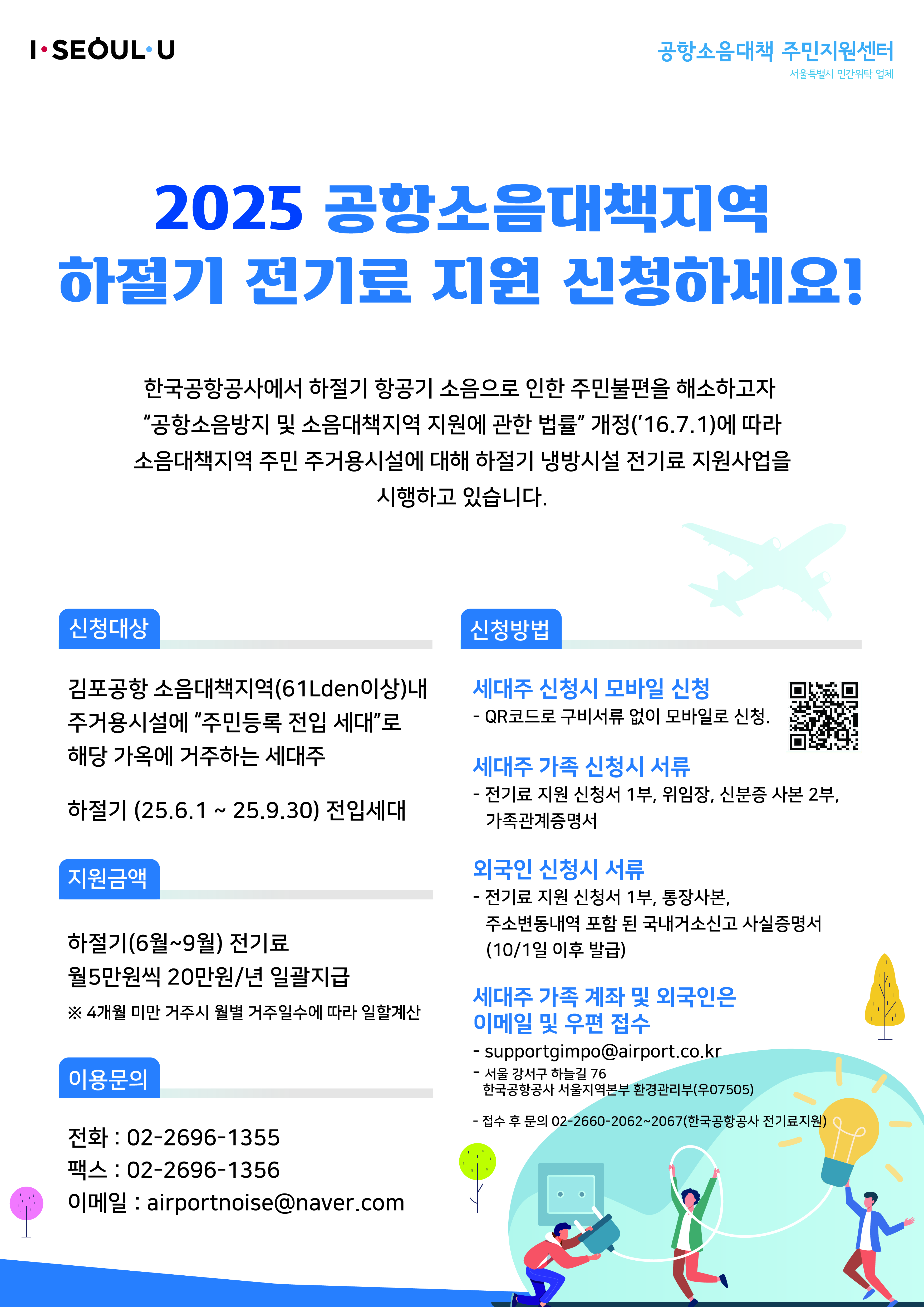 2025년 김포공항 소음대책지역 주민 전기료 지원 안내>