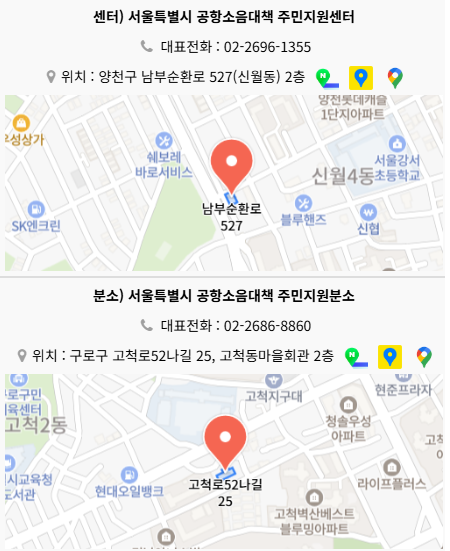 저희 센터는 서울시의 방침에 따라 공항소음대책 주민지원센터가 기존의 2센터(신월, 고척) 3분소(강서,구로,금천)에서